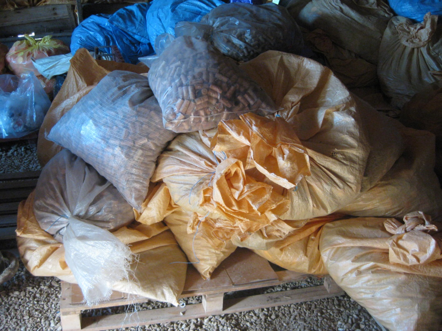Le recycleur avait beaucoup de mal à croire que nous livrions 520 kg de canettes en aluminium (fourgon + remorque). Une benne de 30 m3 avait été livrée pour cette équivalence! La photo est parlante: nos canettes sont bien écrasées. Cherchez "l'erreur". Nous rationalisons nos déplacements.